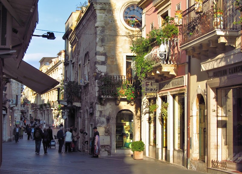 La Plaza IX Aprile, situada en el corazón de Taormina, es el punto de encuentro por excelencia. Rodeada de cafeterías y tiendas, esta plaza es famosa por su impresionante vista panorámica y el encantador reloj astronómico de la Torre del Reloj. Aquí es donde puedes tomar un descanso, disfrutar de un gelato y sumergirte en la vibrante atmósfera de Taormina.